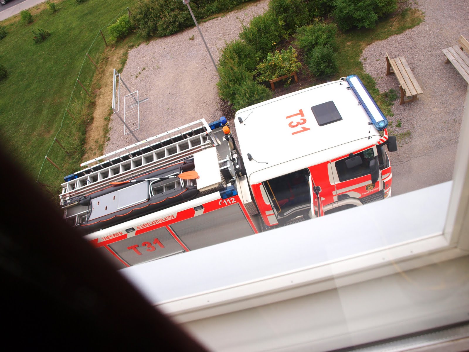 Ei huono alku lomalle. Rappu täynnä poliiseja ja palomiehiä klo 08:00. Itsehän en oikein kerinny kyseisiä palomiehiä bongailemaan, kun yhtäkkiä tajusin, että niin jos yläkerran setä onkin grillannut ruokansa tosi pahasti pohjaan, ja koko talo evakuoidaan, mun ois varmaan parempi pukeutua. Lopetin valokuvaamisen lyhyeen, ja kipitin laittamaan vähän ripsaria. Ja minäkö turhamainen? (Hey c’mon kyllä tekin oisitte tehny ihan samoin!) ;) Noh, eipä siellä sitten mikään kuitenkaan pahasti kärynny, ja tämä tulinen aamunavaus sai onnellisen lopun.
