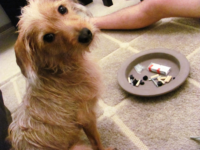 Kyllä Ikealla on sitten hieno asiakaspalvelu. Kotona odotti valmiina tuollainen remontti-M vasara ja ruuvari valmiina hyppysissään. Remonttireiskalla oli myös apuri mukanaan, Eppu-Etevä. Ja mun tehtäväkseni jäi toimia operaation työnjohtajana. Älkääs nyt väheksykö mua yhtään, mikä työmaa muka toimisi ilman pätevää työnjohtajaa? ;)