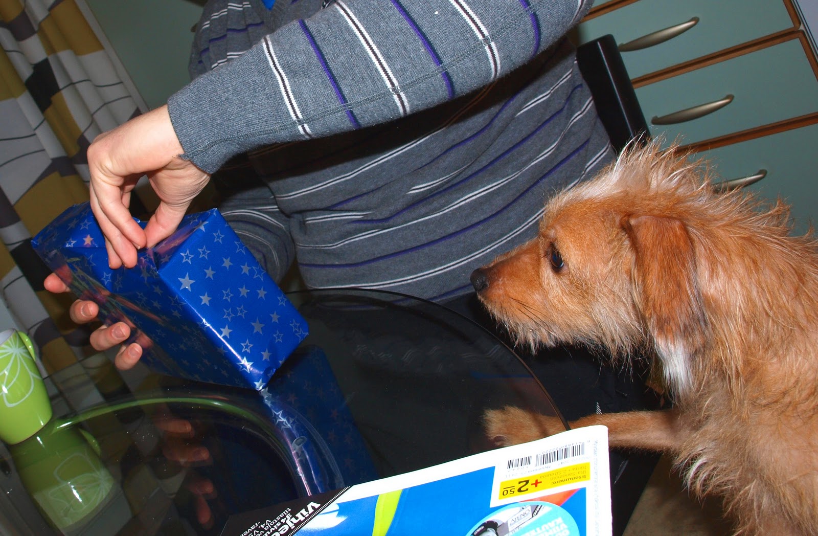 Eppu oli sitä mieltä, että aivan älytöntä, että vaan yks saa aukasta paketteja. Kaverille kans! Noh, kun paketista paljastuikin vain navigaattori, eikä siankorvia sittenkään, ei Eppukaan ollut enää lainkaan mustasukkainen.