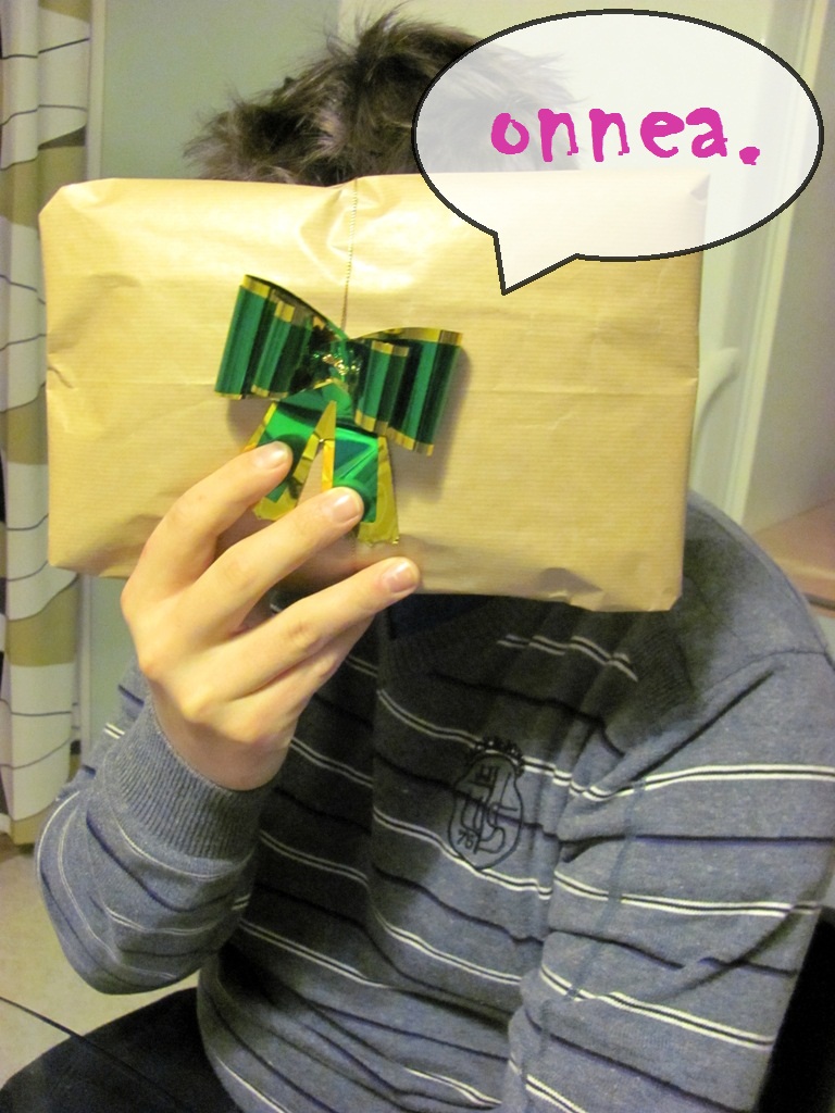 Itse hommasin Matille (nyt mä meinaan sitten joka kerta kirjottaa, että M:lle :D ) navigaattorin sekä Ginch Gonchin Lontoo-boxerit (ne saa tosin laittaa päälle vasta Lontoon matkalla). Paketista paljastui myös Super-Kekkonen, virvokkeita ja arpoja, mutta luulen, että kaikista mieluisin lahja oli nuo Liverpoolin väreistä kudotut villasukat. Tai siis JUHLAvillasukat, joita ei töihin kuulemma raski edes laittaa. Masa kiittää ja kumartaa ;)