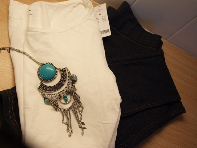 Hennesin alehyllyltä löysin todellisen löydön! Kympin koru oli jostakin syystä alennettu kolmeen euroon, ja tuota massiivista hökötystä tulette taatusti näkemään paljon tulevissa asukuvissa. Turkoosi väri on kaunis ja koristeet ihastuttavia. Olin onneni kukkuloilla, kun bongasin tämän lajinsa viimeisen hyllystä.