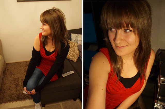 Muistatteko, kun jokin aika sitten Hennesin nettikaupassa myytiin ihmeellisen löllön näköistä puseroa viidellä eurolla? Ihan maaaaailman paras pusero. Tai siis mekkohan tuo kaiketi oikeasti on, mutta kyllä se näillä pakkasilla on pusero. Tänään mekko toimitti teatteriasun virkaa, mutta pakkasessa paleleminen hirvitti sen verran, että vetäisin vielä vilukissan villatakin (H&M) punaisen mekon seuraksi. H&M:n suurehko tilaus saapui tänään, mutta valitettavasti en voi puoliakaan tavaroista vielä esitellä, sillä paketti sisälsi myös joululahjoja.. Palataan huomenna asiaan, josko vaikka kampaisin tukkanikin huomisiin asukuviin (ks. alla oleva kuva).