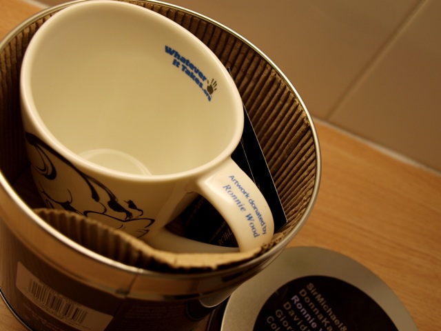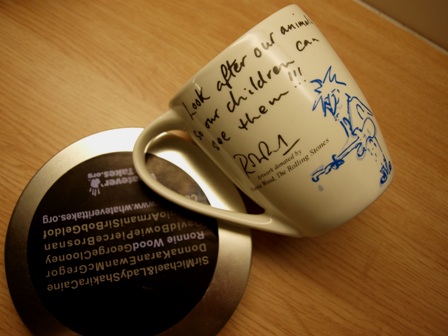 Matti sai lahjaksi Roosalta hauskoilla eläinpiirustuksilla koristellun mukin, jossa kehotetaan huolehtimaan maapallon eläimistä, jotta lapsemmekin saavat niitä joskus vielä ihastella ja ihmetellä. Mukin on taiteillut Rolling Stones-kitaristi Ronnie Wood, mutta hän ei suinkaan ole ainut mukitaiteilija kyseisessä järjestössä. Omilla lausahduksillaan ja kuvituksillaan on mukeja tehty myös muun muassa Pierce Brosnanin ja Giorgio Armanin toimesta.