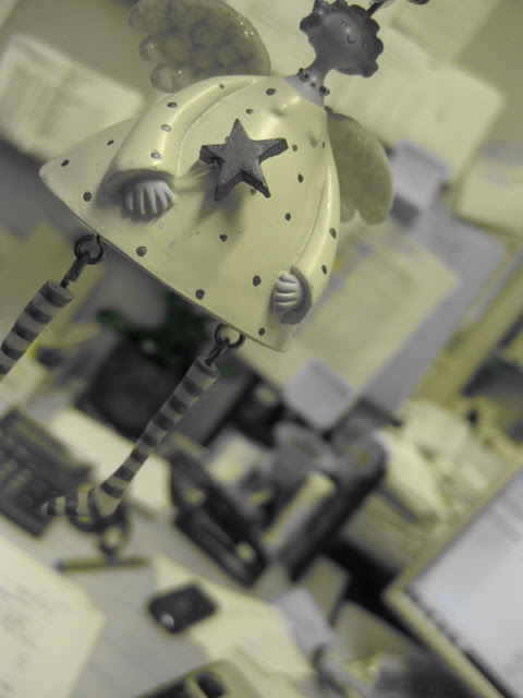 Tälläinen kökötteli mun työpöydällä aamulla. Se pahoitteli kovin ettei ollut ehtinyt jouluksi minua ilahduttamaan, mutta lupasi nyt kiltisti koristaa jouluani tulevien vuosien aikana. Luulen, että tämä tyyppi pelasti mun aamun, tämä ja kuppi vahvaa kahvia. Unihiekat karisi silmistä heti, kun näin pikkupaketin työpöydälläni. Ja se on kovin suloinenkin, ja luulen, että sille voisi löytää makkarin sisustuksesta ihan vakituisenkin asuinpaikan.