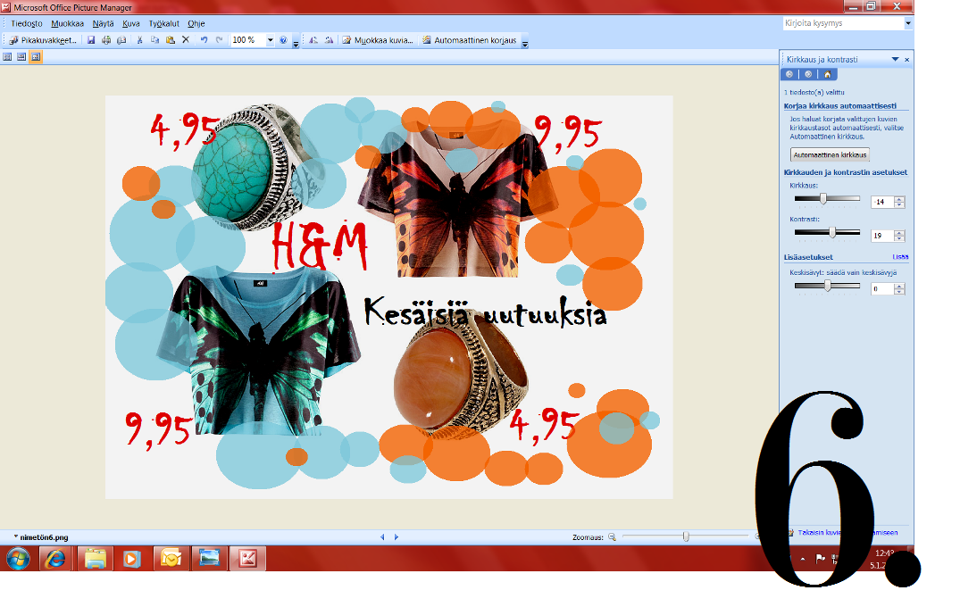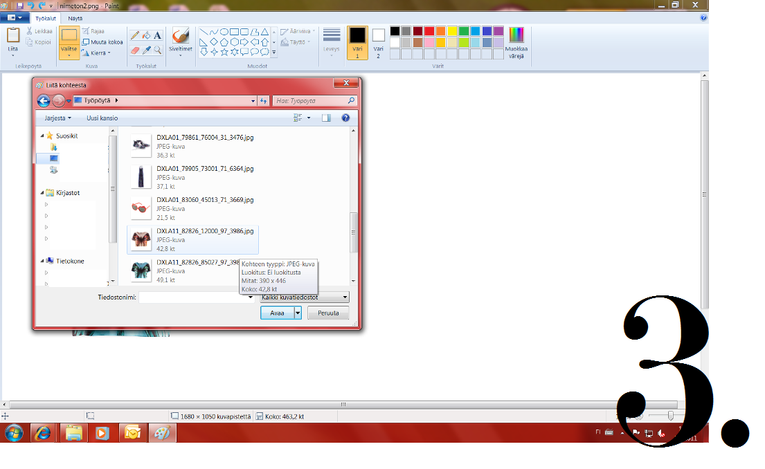 Kuva lisätään kohdasta Liitä (Liitä kohteesta). Valitse kuvan tiedostosijainti ja paina avaa. Näin kuva avautuu kollaasiisi. Jotta saisit kuvan muutettua sopivankokoiseksi tai käänneltyä sitä, voit muokkailla valittua kuvaa kohdissa muuta kokoa ja käännä. Suosittelen kuitenkin, että ennen kollaasin tekoa, muutat kaikki kollaasissa käytettävät kuvat samankokoisiksi.