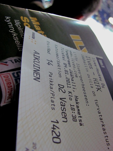Varsinaista muotipostausta ei kyllä jääkiekko-ottelusta saa tekemälläkään. Vaatetuksesta näkee kenen leiriin kuulut, ja omaa väriä kannetaan ylpeydellä ;) Ja sehän se jääkiekon juju onkin, oman joukkueen väriä päälle ja armoton huutomyräkkä käyntiin, kun jäällä sattuu ja tapahtuu. Mutta siinä kohtaa, kun sun takana olevalla rivillä istuu tyyppi, joka huutaa 234 090 kertaa ”ny on henki päällä, ny on henki päällä”, saa ja voi mennä hermo. Ja välillä jäälle näyttää eksyvän myös plussapalloja..