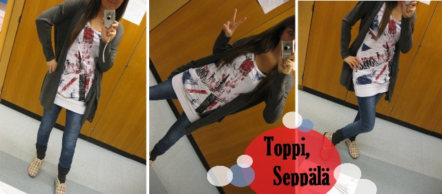 Mun ja mamin keväälle suunniteltua Lontoon matkaa on nyt suunniteltu ja suunniteltu ja suunniteltu, ja pian pitäs lyödä jo suunnitelmat lukkoon. Hotellivinkkejä otetaan muuten Lontoon keskustan läheisyydestä vastaan ;) Näistä suunnitelmista intoutuneena vedin päälle tänään pari vuotta vanhan Seppälän valkoisen lipputopin, ja topin päälle löysi tiensä Gina Tricotin uusi aleneuletakki. Aikasmoinen pappa-look, mutta se taitaa johtua pääosin näistä Reinoista (, jotka edelleen on muuten mukavimmat kengät mitä oon ikinä omistanut).