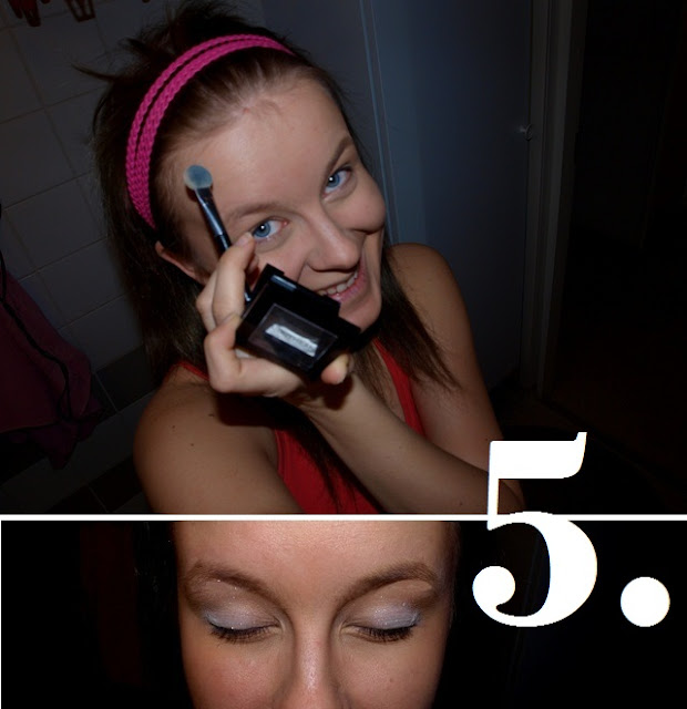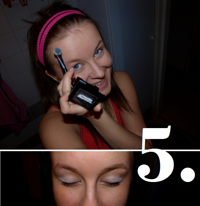 Välillä intoudun leikkimään myös väreillä. Luomivärit ovat hauska keino tuoda pientä säihkettä silmiin, vaikka itse usein turvaudunkin vain helmiäissävyihin. Lempiluomivärini on vaalea (valitan, mutta paletista on tuotemerkki hävinnyt..), ja bilemeikkiä tehtäessä saatan lisätä pienen ripauksen tummempaa väriä vaalean seuraksi.