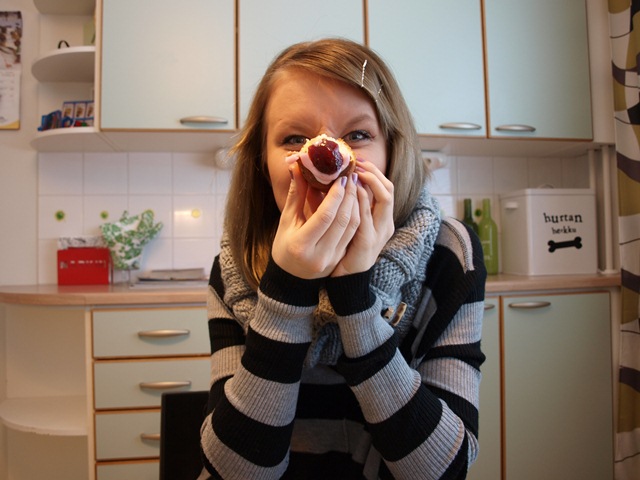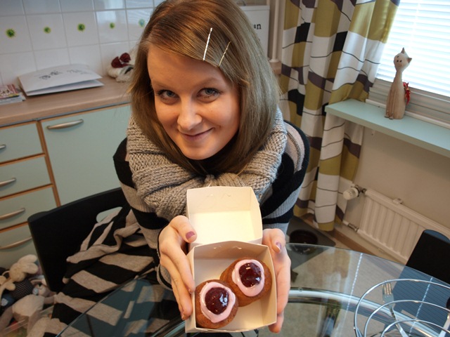 Hihiii, hyvin ehtii vielä. Makoisaa Runeberginpäivää runebergintortun muruseni! Matti toi töistä kotiutuessaan tuollaiset kevyet iltatortut meille vielä naposteltaviksi. En oo kyseisen tortun fani, mutta kyllä sitä nyt kerran vuodessa voi herkutella. Miten syötte runebergintorttunne? Itse nakerran sen tuollain maissimaisesti, Matti vetää hillon ensin (aivan käsittämättömän outo tapa). Pienempänä muistan jättäneeni aina tuon hillon viimeiseksi. Marja Tyrnin jälkeen tämäkin tekstipätkä taitaa olla K18-kamaa.. :D