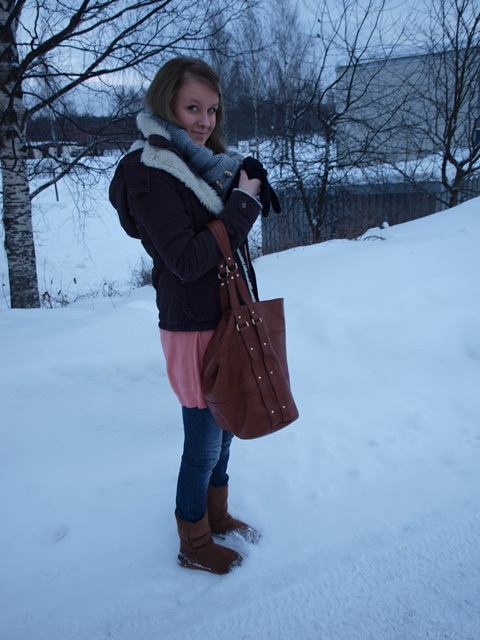 Ipa voitti! Ihan mahtavaa. Kerrankin, kun mä oon paikalla! :D Ilveskissanainen hipsi Hakametsään farkuissa ja Ginan korallinpunaisessa pitkässä neuleessa. Kirppistakki meinasi joutua jo kierrätykseen alkutalvesta, mutta hyvä, että päätin sen kuitenkin pitää, se on ihan täydellinen näille keleille. Pelistä ei nyt valitettavasti ole kuvia, kun en viitsinyt alkaa järkkärillä siellä kuvia napsimaan (pelotti niin *#%&?:sti muutenkin, kun takana istui kaksi todellista Ilves-fanaatikkoa, joiden joka toinen sana alkoi V:llä ja joka toinen jollakin muulla voimasanakirjaimella).
