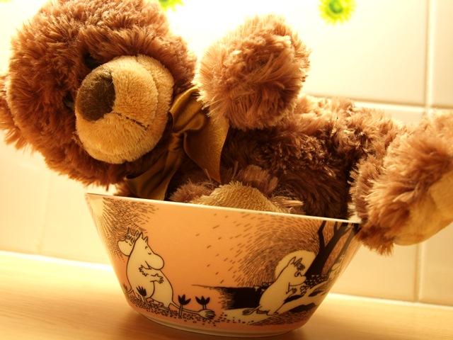 Me vietettiin Matin kanssa viime vuonna ensimmäistä ystävänpäiväämme yhdessä. Ekana ystävänpäivänä saa ainakin söpöillä, eksni? Noh, me sovittiin, että mitään ei toisillemme osteta.. Meidän suhde perustuu hyvin pitkälti yhteiseen huumorintajuun, ja Matti tietää, että en ole mikään nalleihminen. Tuollaisella nallukalla mua sitten kuitenkin kyseisenä päivänä lahjottiin. Vallu (Valentine’s Day, you know) kökötti Arabian Muumi-kulhossa. Kulho on ollut kovassa käytössä, ja on siis kovin rakas minulle :) Suloinen lahja, vaikka vähän ällösöpö olikin ;)<3 Myöhemmin kuulin, että Vallu oli Epun ystävänpäivälahjaksi alunperin tarkoitettu. :D
