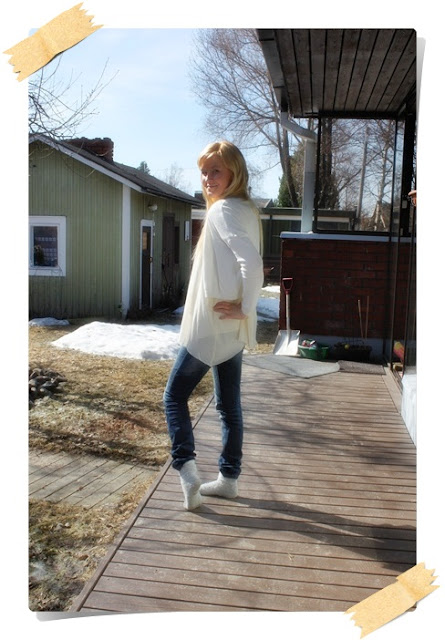Ihanaa lisätä blogiin asukuvia, joiden taustana ei ole aina sama parvekkeen seinä. Aurinko helli meitä juhlijoita tänään oikein kunnolla. Kummitädin terassilla tuli jopa hiki ja puolen tunnin istuskelun seurauksena kaulani punoitti jo siihen malliin, että aloin varovaisesti uneksia rusketusrajoista?