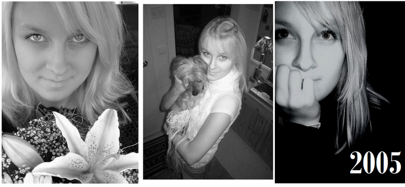 2005: Lukion tokaluokkalainen innostui selvästikin mustavalkoisesta kuvailusta, koska tietokoneiden ja arkistojen syövereistä ei löytynyt yhtäkään värillistä kuvaa. Hiukset lyhentyivät kuitenkin tuolloin olkapäille ulottuviksi, asukuvista päätellen persoonallisesta pukeutumistyylistä ei kuitenkaan vielä tuolloin voinut millään tasolla puhua. Huiveja, farkkuja ja t-paitoja; niillä mentiin.
