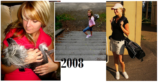 2008: Vuonna 2008 muutin ensimmäiseen omaan asuntooni ja oman vaatehuoneen saatuani taisi shoppailukin karata käsistä. Tyyli pysyi kuitenkin edelleen kovin sporttisena päätellen jokaisessa kuvassa olevasta eri lenkkariparista. Innostuin golfista ja suoritin green cardin ja hiukset saivat uutta ilmettä tummilla raidoilla. H&M oli tuolloin kova sana :D