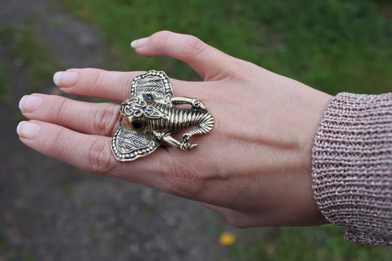 Ja mitäpä harakka tavoilleen voisi. Spirit Storen uutuustuotehyllystä bongasin eilen maailman upeimman ja näyttävimmän sormuksen. Voipi olla, että kiinnostukseni ja ihastukseni elefantteja kohtaan vain kasvoi katsottuani viikonloppuna Vettä Elefanteille-leffan ;) Joka tapauksessa, nyt sormessani komeilee oma pikku-Rosieni ;) Olen tosin kuullut, että tietää huonoa onnea käyttää norsukorua, jossa norsun kärsä on alaspäin. Totta tai ei, onhan tuo kaveri hilannut kärsänsä edes puoleen väliin, joten uskon sen tietävän vain hyvää onnea ;)