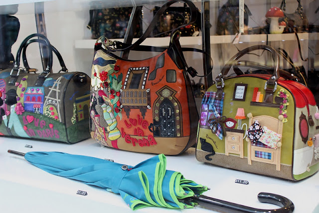 Katsokaahan mitä aarteita kyseisestä ikkunasta nyt löytyi! Upeat laukut olisivat rokottaneet tosin lompakkoa aikalailla, joten jälleen kerran tyydyin niitä vain ihastelemaan. Luulen tosin, että vaikka tuollainen laukku itseltäni löytyisikin, sen käyttö jäisi melko vähäiseksi. Katseenvangitsijoita joka tapauksessa!