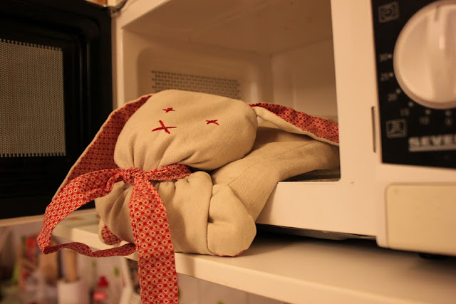 Ja napatkaahan tästä myös joululahjavinkki talteen; ompele hauskasta kankaasta joko pupu tai ihan vain normityynyliina, jonka täytät kauralla (ei, ei niillä Elovenan hiutaleilla, vaan ihan kauralla). Pakkaa tyyny kauniiseen lahjapakkaukseen ja kiikuta uudelle omistajalleen. Hartiat, menkkakivut ja muut kolotukset ainakin kiittävät! ;)