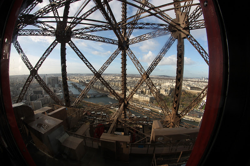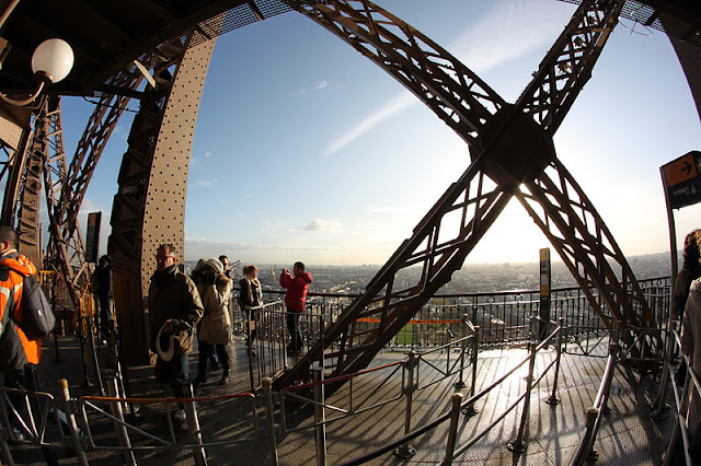 …. oli aivan horrible! Jalat muuttuivat nuudeleiksi lippuluukulla jonottaessamme, hissimatkan toiselle tasanteelle asti pidin silmiä kiinni ja siinä kohtaa, kun jo toinen tasanne tuntui olevan liikaa minulle, keräsin jostain tahdonvoimaa (kiitos iskän rohkaiseville tekstareille!) ja päätin nousta huipulle saakka. Ensin oli toki kaiteesta kiinni pitäen napsittava muutama pakollinen jei mulla on kivaa- kuva.