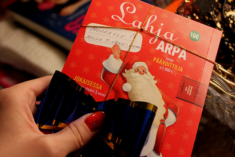 Muorille ja vaarille lähtevät myös suuren suuret kiitokset paketeista. Matin paketista paljastui nimittäin setti saunatarvikkeita, jotka pääsevät käyttöön uudessa omassa saunassamme uudessa kodissa ja myös Erkki-vaarilta saatu arpa toi jännitystä jouluun ♥