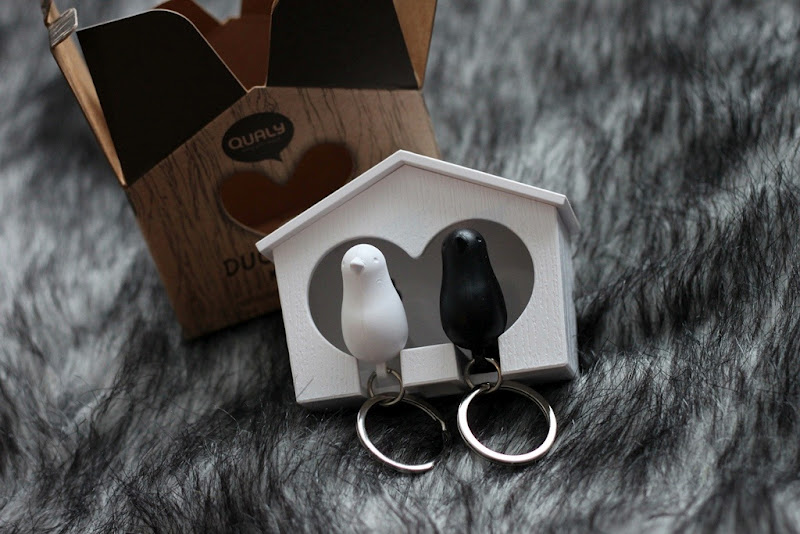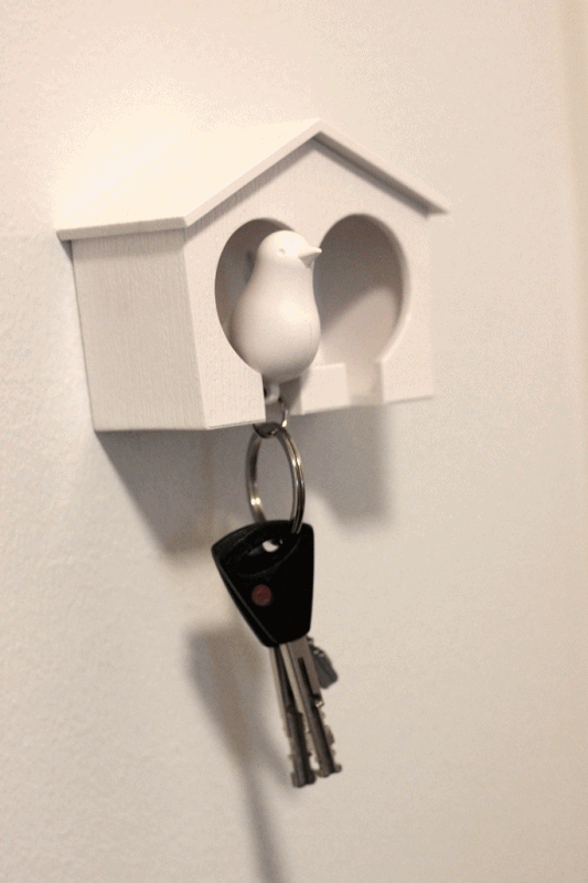 Meillä tuo Qualyn varpuspari pääsi välittömästi koristamaan eteisen valkoista seinää. Mattikin innostui uudesta avaimenperästä niin, että vanha perä sai kyytiä ja uusi musta lintunen pääsi killumaan avaimiin.