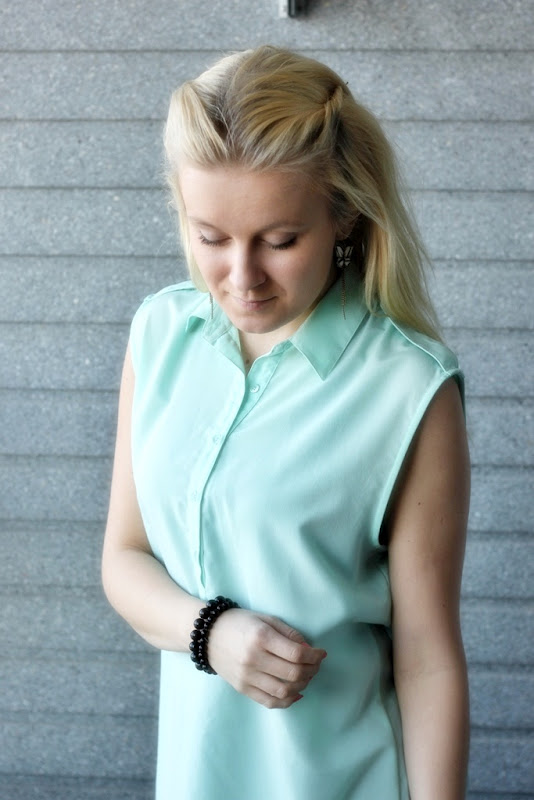 Viikonloppuna Gina Tricotin alennusmyynneistä löydetty tunika/ liivimekkonen/ kaapu/ pusero pääsi eilen käyttöön. Rakastan helppoja ja yksinkertaisia asuja; kaunis asu syntyy välillä niin helposti, tälläkin kertaa tämä hurmaava mintunvihreä yksilö ei tarvinnut kaverikseen kuin mustat paksut legginssit, hieman koruja ja vilua välttääkseni heitin päälle vielä valkoisen neuletakin. So simple! Lauantaiaamu starttaa kampaajakäynnillä, mutta eilen väkersin otsahiukset pois silmien edestä kieputtamalla ne putkiloille, jotka tarvitsivat vain pinnit paikoillaan pysyäkseen.