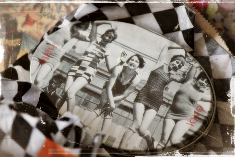Eikä siinä vielä kaikki; suloisen sanomalehtipaperipussukan sisästä löytyi herttainen korurasia, joka oli kääritty mustavalkoiseen silkkipaperiin, jonka sisuksista löytyi niin hurmaava pieni peltirasia, että huokailin ihastuksesta!