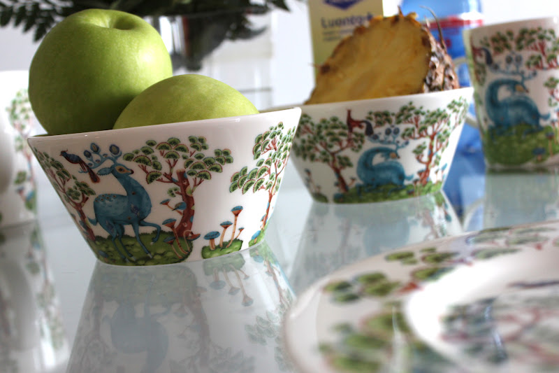 // Aren’t they just gorgeous! The Satumetsä Collection is from the Finnish brand called Iittala, and the pattern is designed by Klaus Haapaniemi. I am a happy owner of four Satumetsä mugs, four plates and two bowls and I hope that someday my collection would grow even more! I love them <3