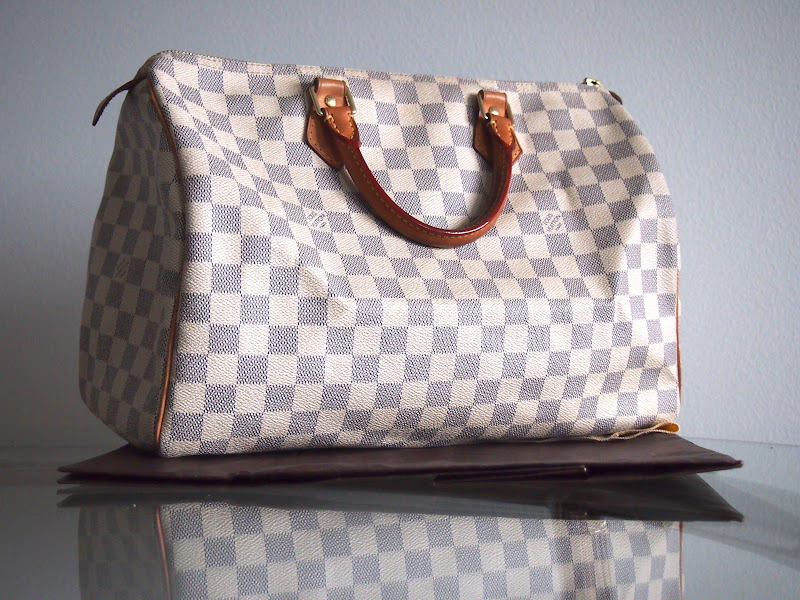 Rahat tähän laukkuun säästin jo viime joulukuista Pariisin matkaa varten, mutta pupu meni lopulta Louis Vuittonin liikkeen edessä pöksyyn sen laukkupaljouden ja hälinän tiimellyksessä ja päätinkin pistää rahat lopulta kasvamaan säästötilille. Kunnes sitten kiusaus yltyi tällä viikolla niin kovaksi upean Xenian blogia lukiessani. Laitoin tarjouksen Xenialle hänen myynnissä olleesta Speedy 35 Damier Azuristaan, ja kuinkas sitten kävikään..