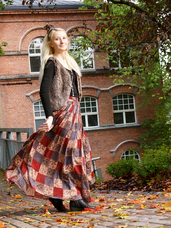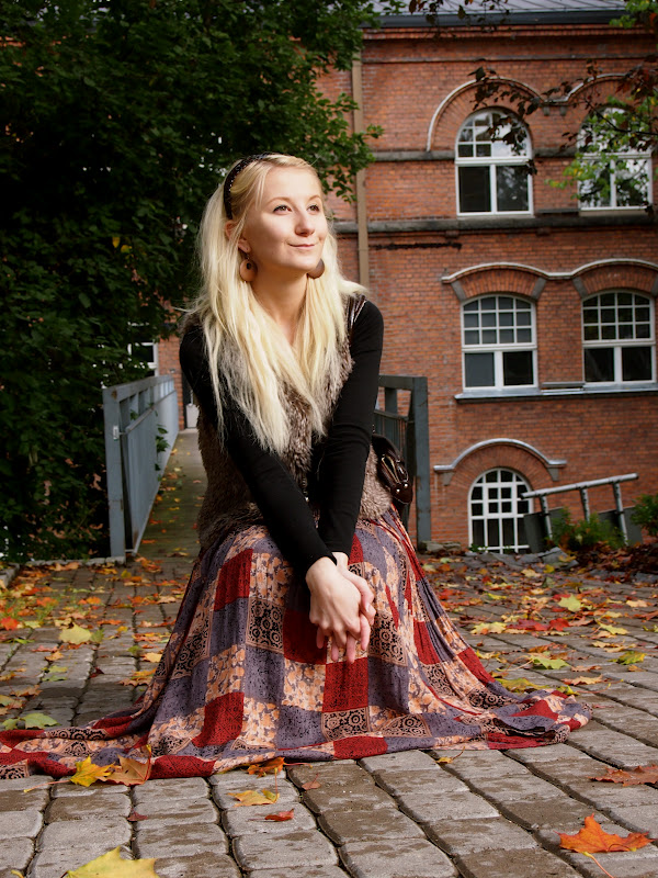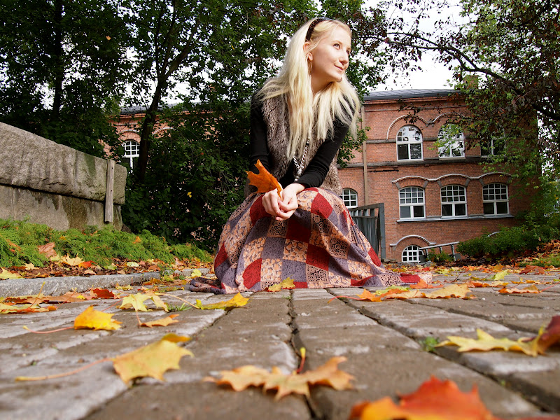 Ostosretki keskustaan vaihtuikin siis yllättäen pieneksi kuvailutuokioksi, kun pikkusiskoni Roosan asu oli kuin tehty tuohon upeaan syksyiseen kaupunkimiljööseen. Muistattehan, että julkaisen C&C:n Facebookin puolella silloin tällöin bongauksiani katukuvassa näkemistäni tyylitaitureista.
