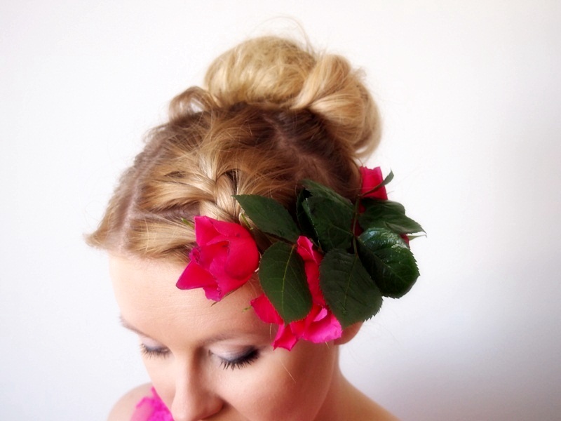 Kun olet saanut poimitun palmikon tehtyä, voit kiinnittää sen pienellä ponnarilla niin, että letti ei pääse karkailemaan. Itse tein letin hieman vielä kosteisiin etuhiuksiin, jotta hiusten käsittely oli helpompaa. Kun letti on kiinnitetty paikoilleen, voit aloittaa hiusten kihartamisen. Itse käytin kihartimena Remingtonin sauvakiharrinta.