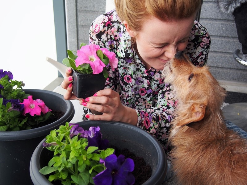 Eppu on tullut kotiin! Eppu oli pari viikkoa nauttimassa maaseudun rauhasta ja palasi nyt viikonloppuna kotiin täynnä intoa ja energiaa. Olette kovasti toivoneet Eppu-postauksia lisää ja nämä kuvat oli ehdottomasti pakko jakaa kanssanne. Istuttelin nimittäin eilen hieman kukkia parvekkeellemme, ja kuinka ollakaan tuo pieni sisustusassistenttini oli tästä askareesta enemmän kuin innoissaan.