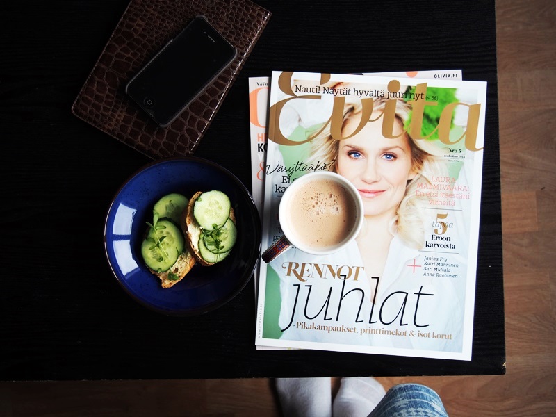 Kotiuduin itse asiassa juuri pieneltä Tampere-Helsinki-Tampere-roadtripiltä ja nyt hyvillä mielin, innolla tulevaa odottaen ajattelin nauttia vapaaillasta, kahlata läpi lempiblogejani, uppoutua hyvien lehtien sisältöihin ja katsella toisella silmällä Frendien uusintoja. Taidan olla aika tylsä persoona, mutta minulle rennon illan menuksi riittää juurikin tämä.
