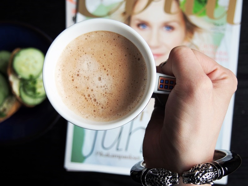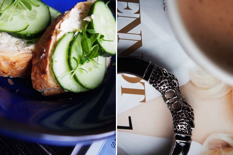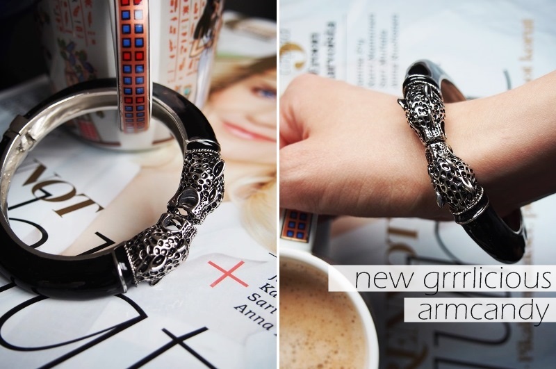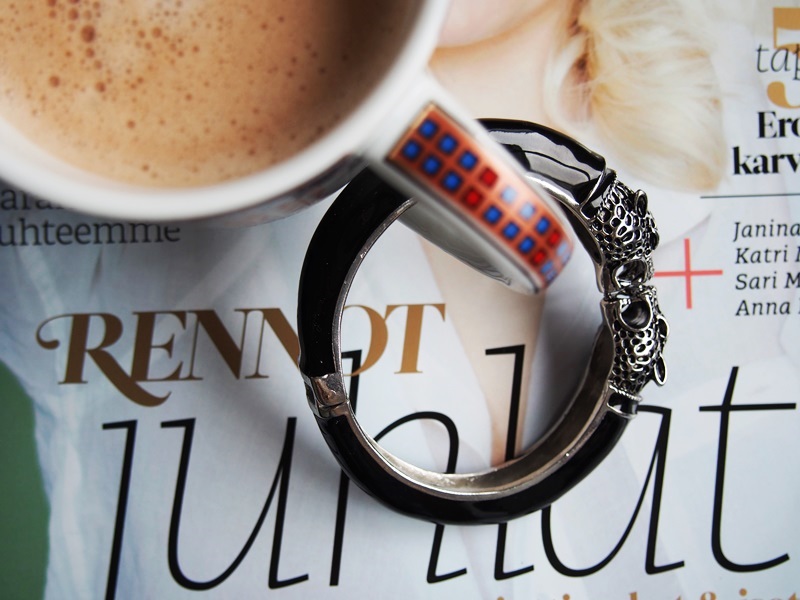 // I just returned home from my little roadtrip to Finland’s capital, Helsinki. The exciting day has now turned into a cozy evening at home with a cup of hot coffee and some magazines- this is SOOO my kind of evening. As a souvenir I got something grrrlicious, Pieeces’ gorgeous bracelet looks amazing for example with a black-and-white-outfit.