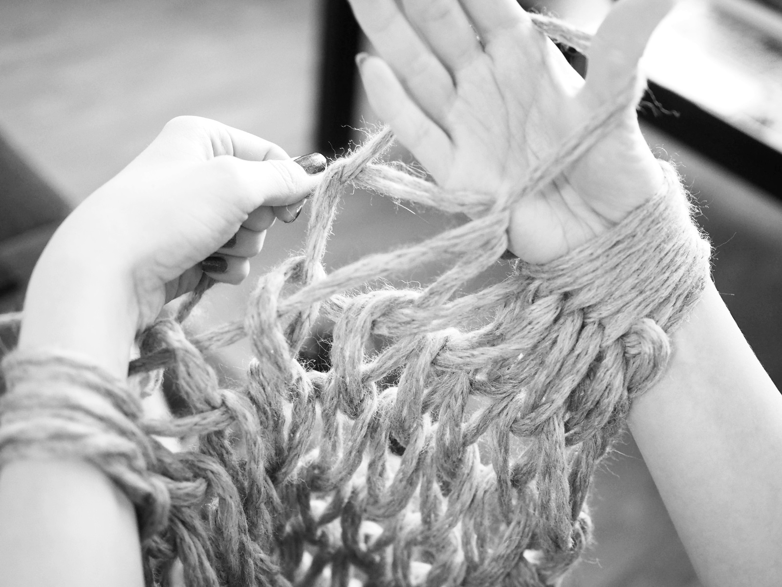 Käsinkutominen on hauskaa, eikä ollenkaan niin haastavaa miltä homma saattaa kuvien perusteella näyttää. Et tarvitse huivia tehdessäsi kuin kaksi kerää lankaa. Voit unohtaa puikot kaappiin. Tarkista kuitenkin kuinka paljon lankakerissäsi on lankaa; itse tein huivini lankakeristä, joissa lankaa oli n. 45 m. Nuo kerät riittivät tuubihuiviin, jota ei saa kaksin kerroin kaulan ympärille laitettua. Jos siis haluat huivistasi pidemmän, valitse kerät, joissa lankaa on 60-80 m. Langan tulee olla myös melko paksua.