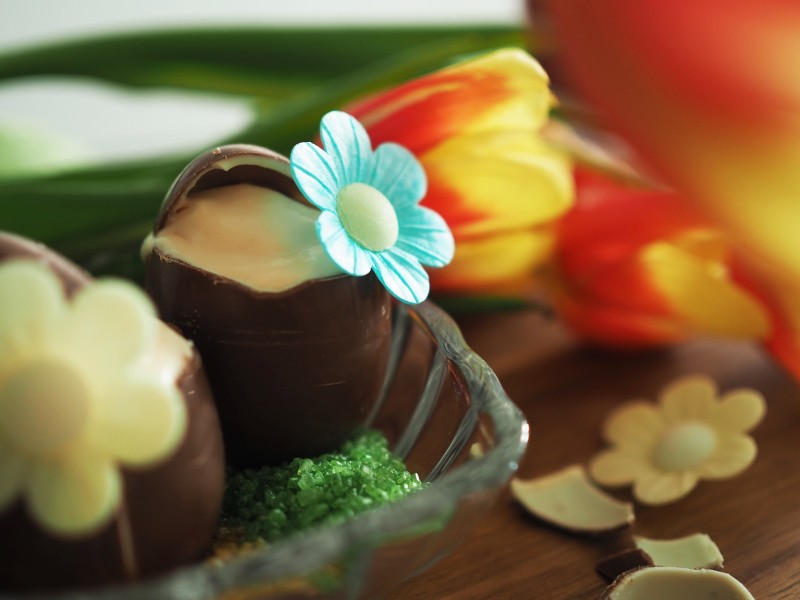 Moussea nostellaan lusikalla suklaamunan sisuksiin ja päälle laitetaan aiemmin irrotettu hattu.