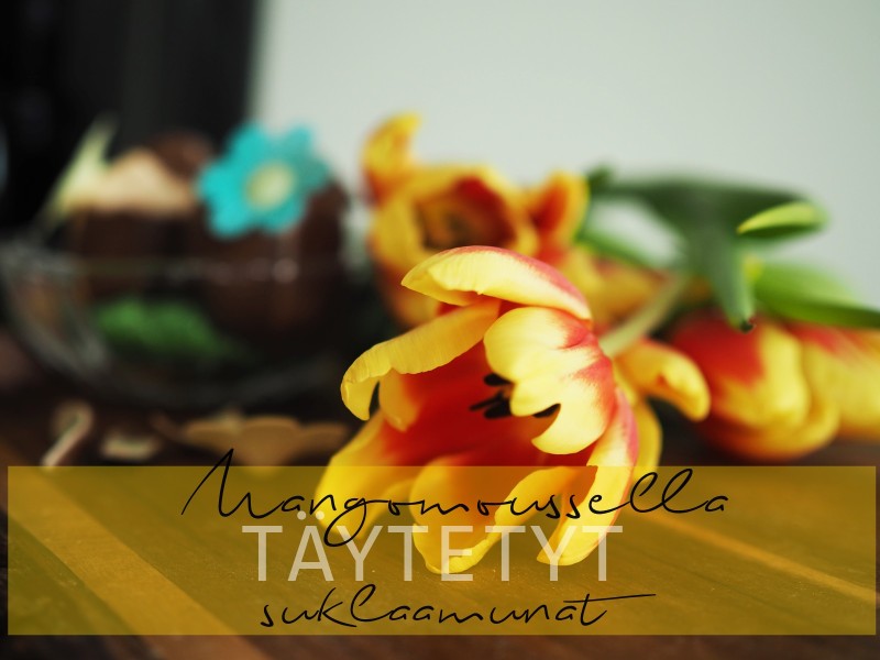 Mangomoussella täytetyt suklaamunat, oi kyllä kiitos. Siinä resepti, jota ei yksinkertaisesti voi olla testaamatta. Tipu kuin tipu osaa nämä pääsiäiseenkin sopivat herkut valmistaa keittiössään ja suklaan ja mangon makupari on niin herkullinen, että suosittelen tekemään kerralla isomman satsin.