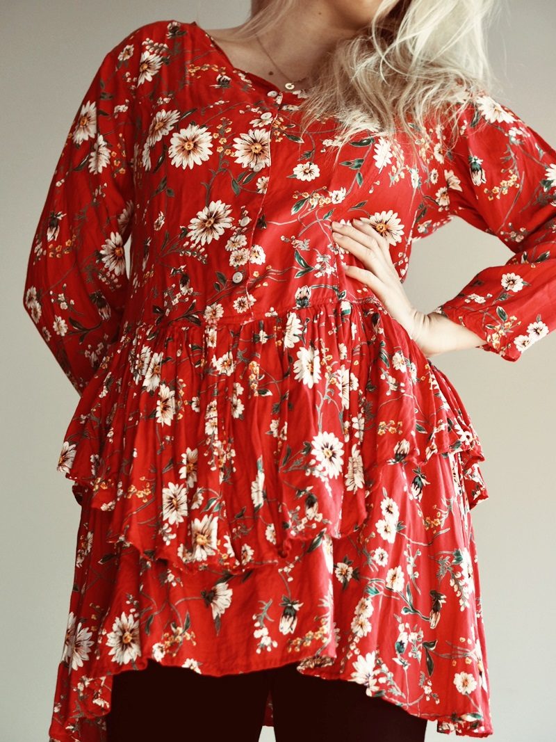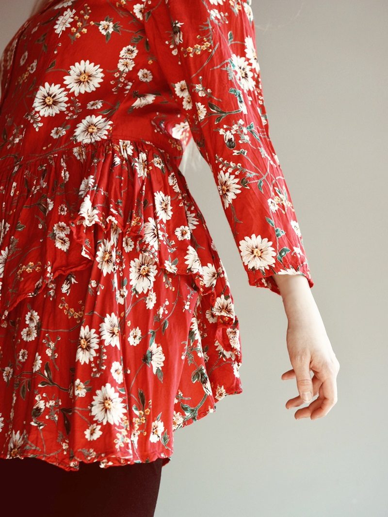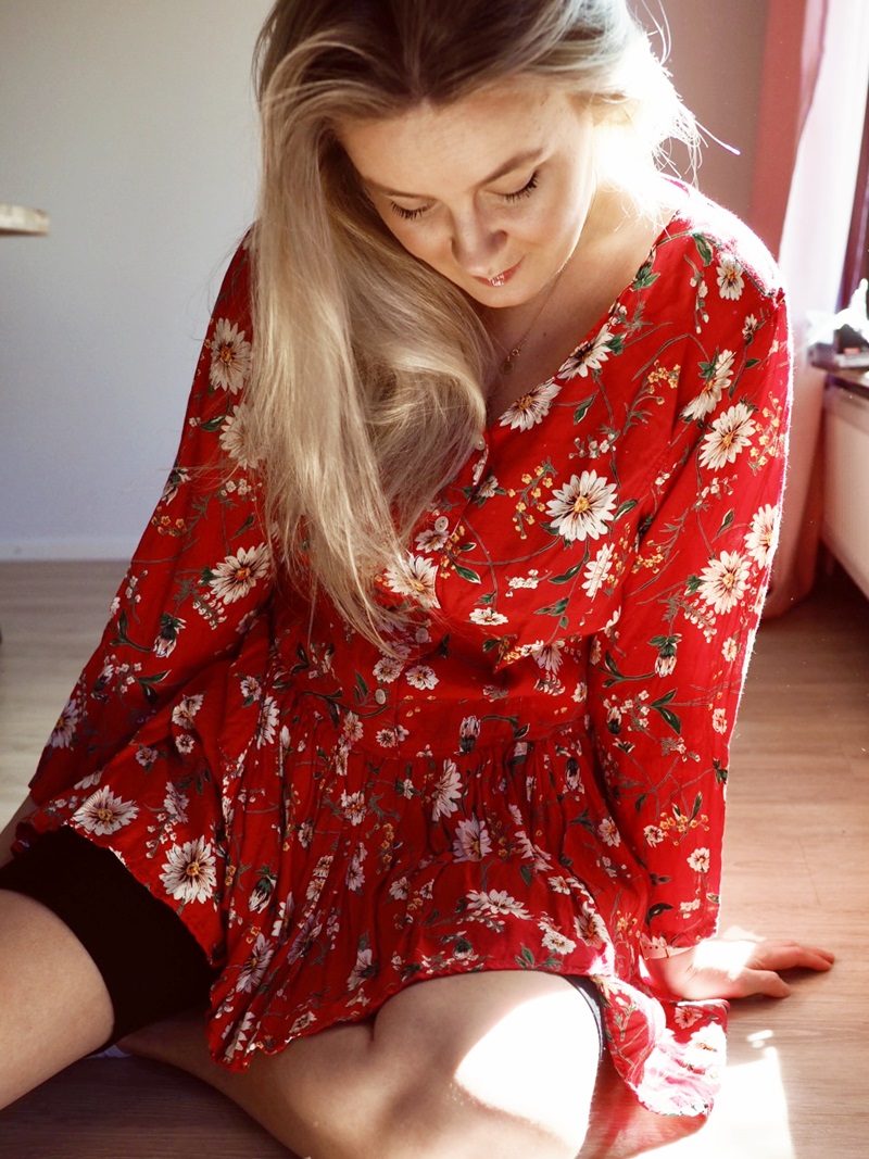 Heti alkuun on todettava, että en ole lainkaan varma siitä, onko tämä vintageaarre tyyliltään peräisin 80- vai 90-luvulta. Printiltään ja leikkaukseltaan se muistuttaa kuitenkin kovasti niitä mekkoja, joita oma äitini käytti lapsuudessani, joten yhdistin tämän löydön tuohon samaiseen aikakauteen. Niin tai näin, on jälleen aika jatkaa suosittua secondhand-löytöjeni postaussarjaa. Alkuvuodesta kirppisonni ei ollut lainkaan puolellani, ja löytöjen esittelyssä olikin pitkähkö tauko. Tämän kukkamekon myötä on kuitenkin jälleen ihana jatkaa tätä postausgenreä.