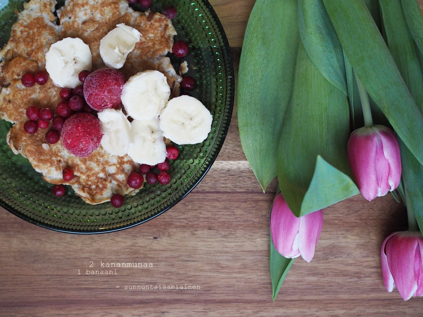 Sunnuntaiaamuna päätin ratsastaa trendien aallonharjalla, ja surautin smoothiemakerissäni yhteen kaksi kananmunaa ja yhden banaanin. En pidä banaaneista, mutta Instagram-feedissä päivä toisensa jälkeen eteeni tupsahtelevat banaanilättyotokset saivat minut vakuuttuneeksi siitä, että nämä ovat testaamisen arvoinen juttu. Ja olivathan ne.